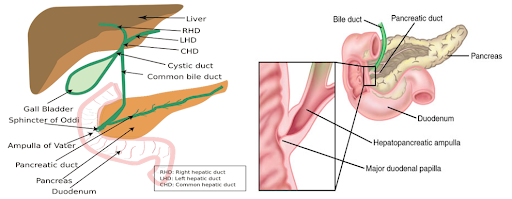 The Common Bile Duct lies in close relation to the head of the pancreas. The initial presentation on about 70% of patients with carcinoma of the head of the pancreas is jaundice due to obstruction of the CBD by the tumour.
