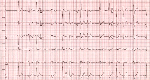This could be potentially a case of a myocardial infarction. A new LBBB in the context of cardiac chest pain is traditionally considered part of the criteria for thrombolysis. It is extremely important to recognize an LBBB on an ECG.