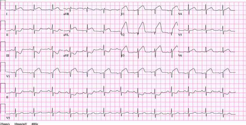 Q.2. A 55 year old man has sudden onset of central chest pain and shortness of breath 3 hours ago. He looks pale and sweaty. An ECG was done in the Emergency Department and is seen below. What is the most likely diagnosis based on this ECG?