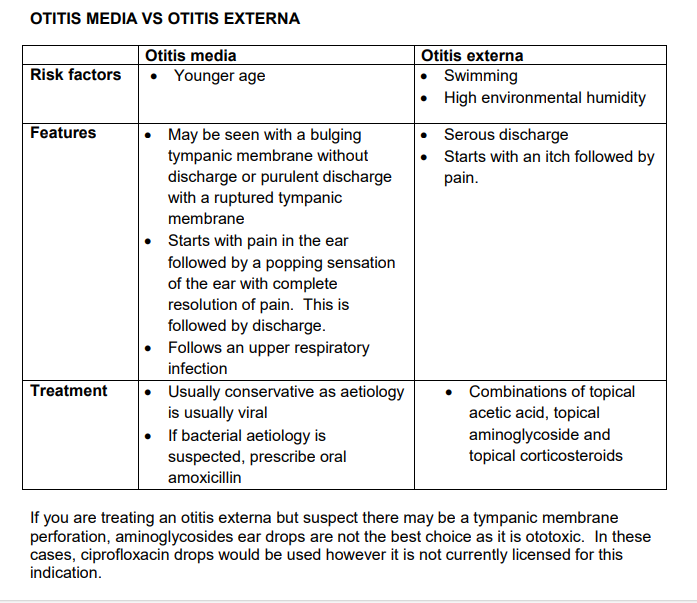 • Hearing loss is usually the presenting feature (glue ear is the commonest cause of conductive hearing loss in childhood).