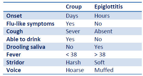 Epiglottitis usually presents abruptly and rapidly with fever, sore throat, dysphagia, respiratory distress, drooling, and anxiety. Physical: Patients tend to appear seriously ill and apprehensive. Characteristically, patients have a "hot potato" muffled voice and may have stridor. Usually, children will assume the "sniffing position" with their nose pointed superiorly to maintain an adequate airway.