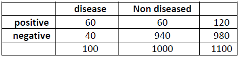 Negative predictive value= True negative/(true negative+ false negative)
