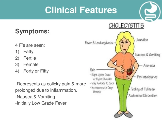 - Cholecystitis causes abdominal pain, not systemic signs like clubbing or pruritis.