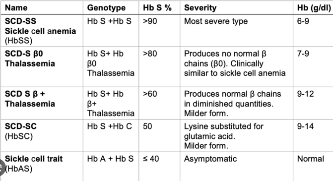 Sickle cell anemia: In sickle cell trait, usually see HbS concentrations of 35 to 45% of total Hemoglobin because the HbS has a slower rate of synthesis than HbA. If HbS is less than 33%, start thinking about S-alpha-thalassemia. If HbS is greater than 50%, worry about S-Beta-thalassemia or Sickle cell disease with transfusion.